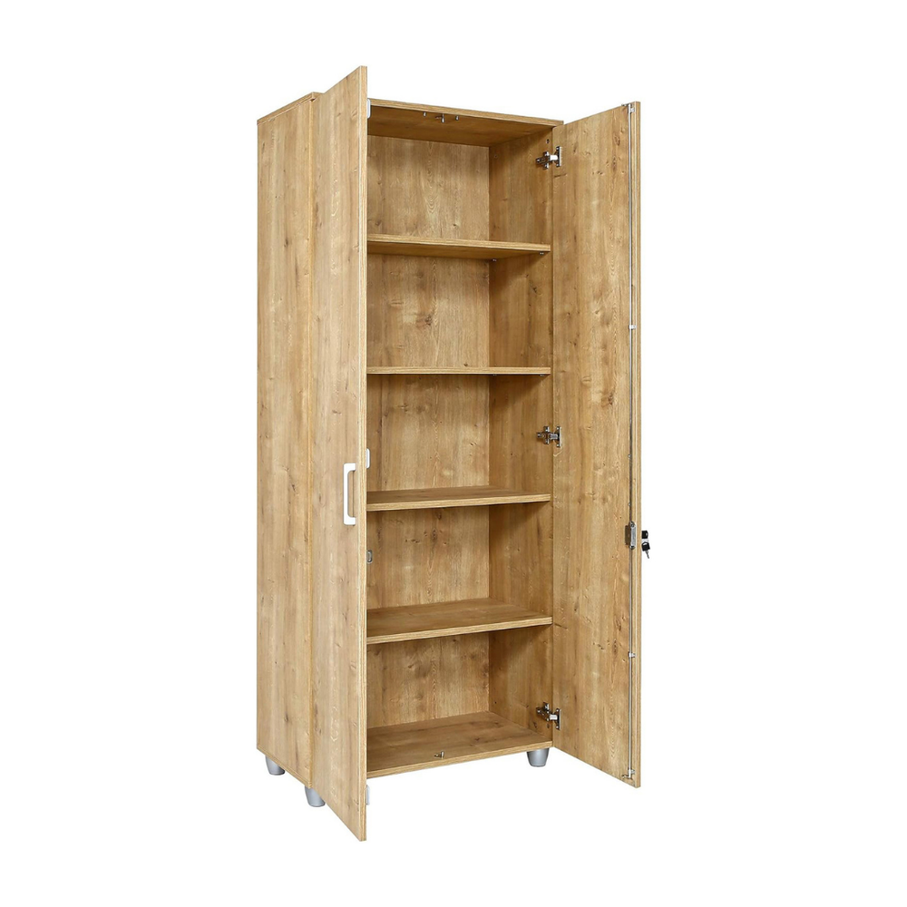 - STABILE & ZUVERLÄSSIGE MATERIALIEN: Korpus, Fronten und Böden bestehen aus 19 mm stabilen hochwertig laminierten Mehrschichtplatten im Dekor Saphir-Eiche. Durch die 8 mm starke Sichtrückwand, kann der Schrank auch in der Raummitte aufgestellt werden.