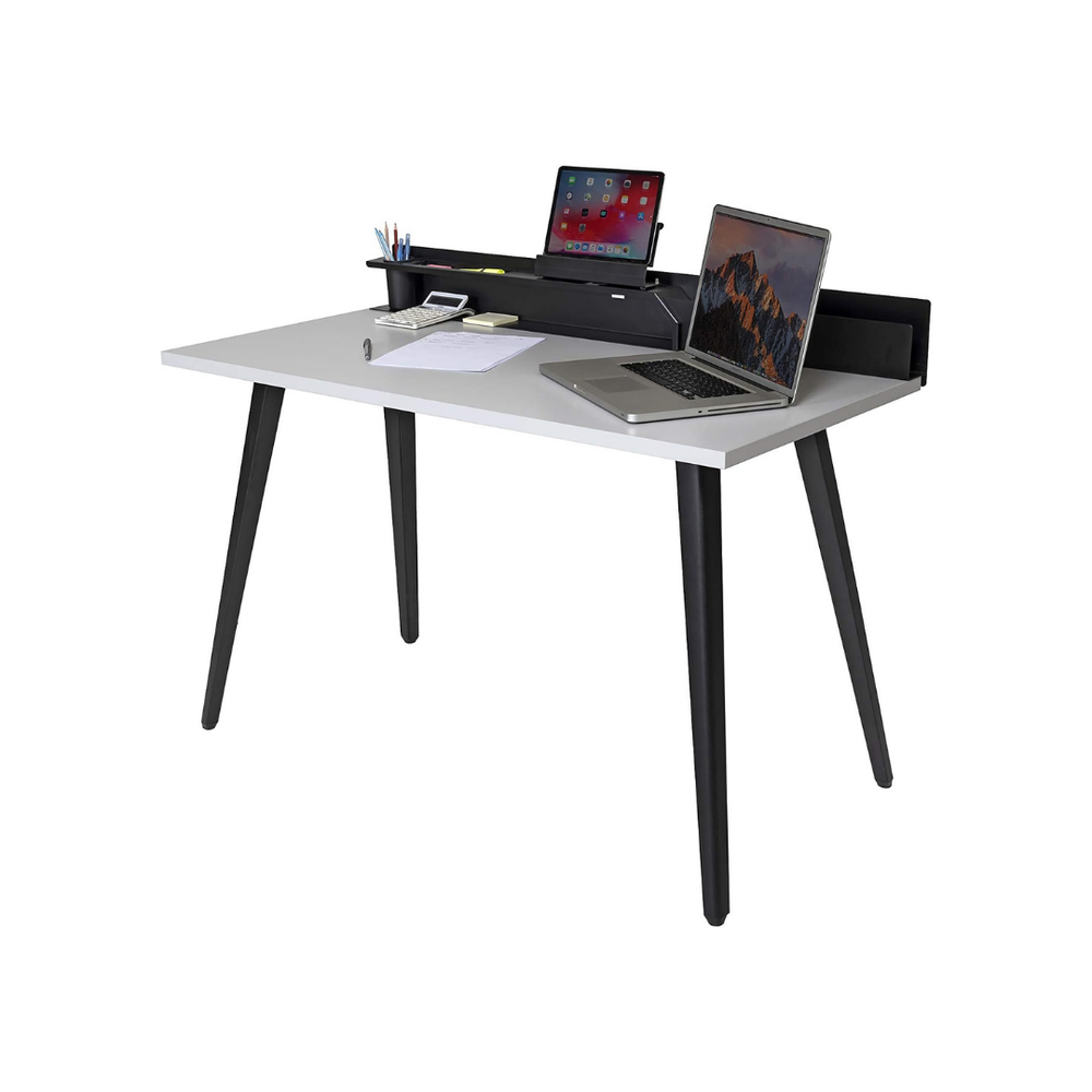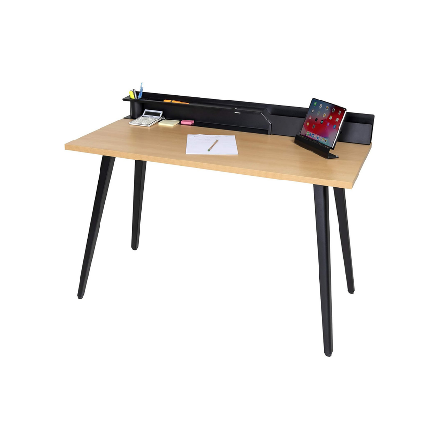 Furni24 Home Office Schreibtisch S-Home Holz inkl. Organizer Aufbau / grau und buche dekor