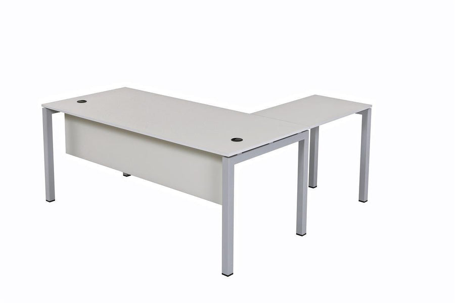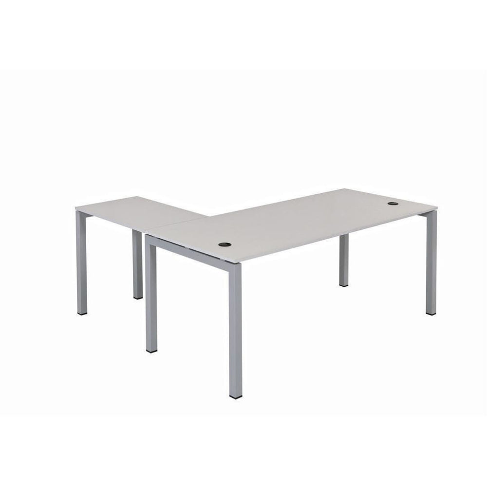 Schreibtisch Tetra, 180 cm, inkl. Anbau rechts o. links montierbar, grau Dekor/silber RAL 9006 inkl. Kabelkanal