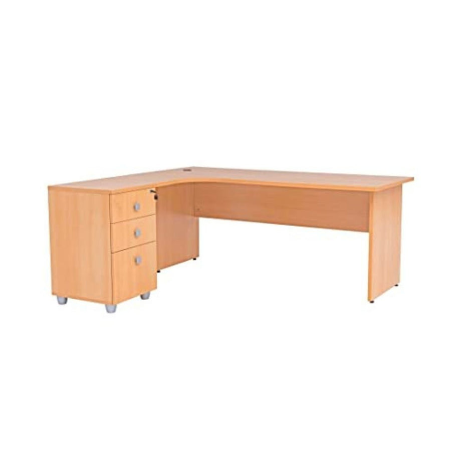 Winkelschreibtisch Dona, Holzfuss, Buche Dekor, 180 cm x 120 cm x 74 cm, inkl. Beistellcontainer, links gewinkelt