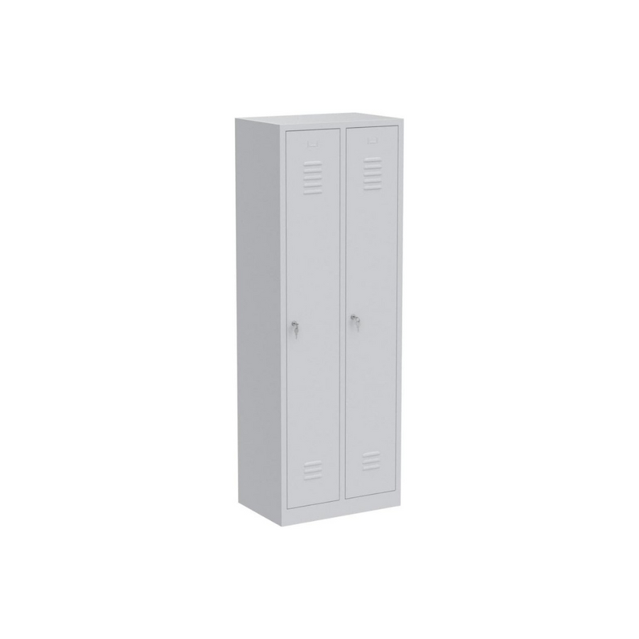Furni24 Garderobenschrank 60x50x180cm Garderobenspind Umkleidespind Spind Schrank Kleiderschrank Abschließbar grau 2-türig 30cm Abteilbreite fertig montiert Verschiedene Ausführungen verfügbar