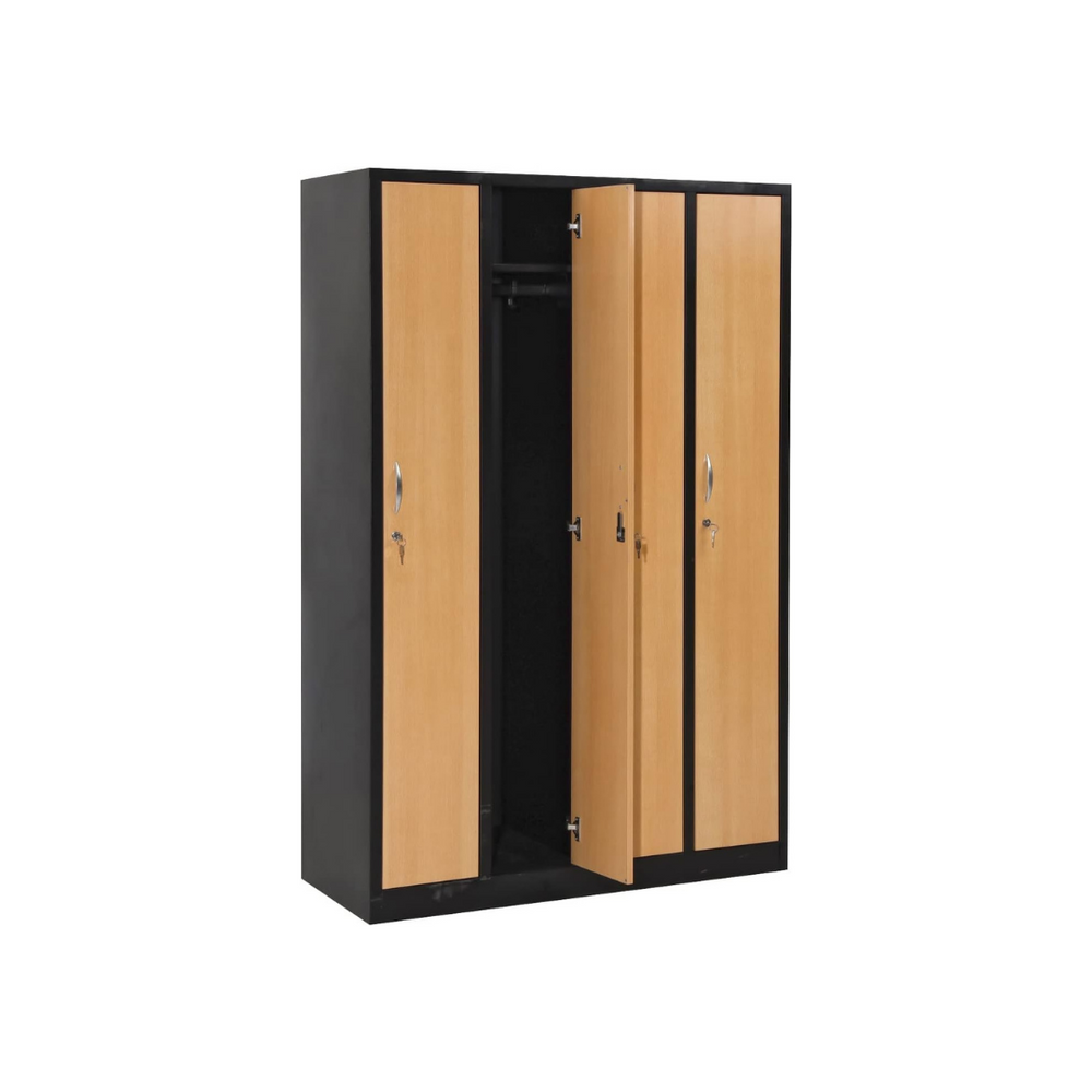 - Dank seiner glatten Oberfläche lässt es sich leicht reinigen. Verschweißter Stahlkorpus auf Sockel. Türen mit Lüftungsschlitzen und eingestanztem Etikettenrahmen. Zylinderschloss mit 2 Schlüsseln. Verdeckte Scharniertüren mit 180°-Öffnung. je Fach eine Garderobenstange, Pulverbeschichtet, GS-Zeichen.