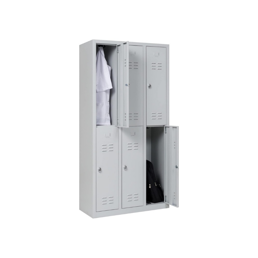 Garderobenschrank Abteilbreite 30 cm halbe Türen, 180 cm x 90 cm x 40 cm / grau RAL 7035