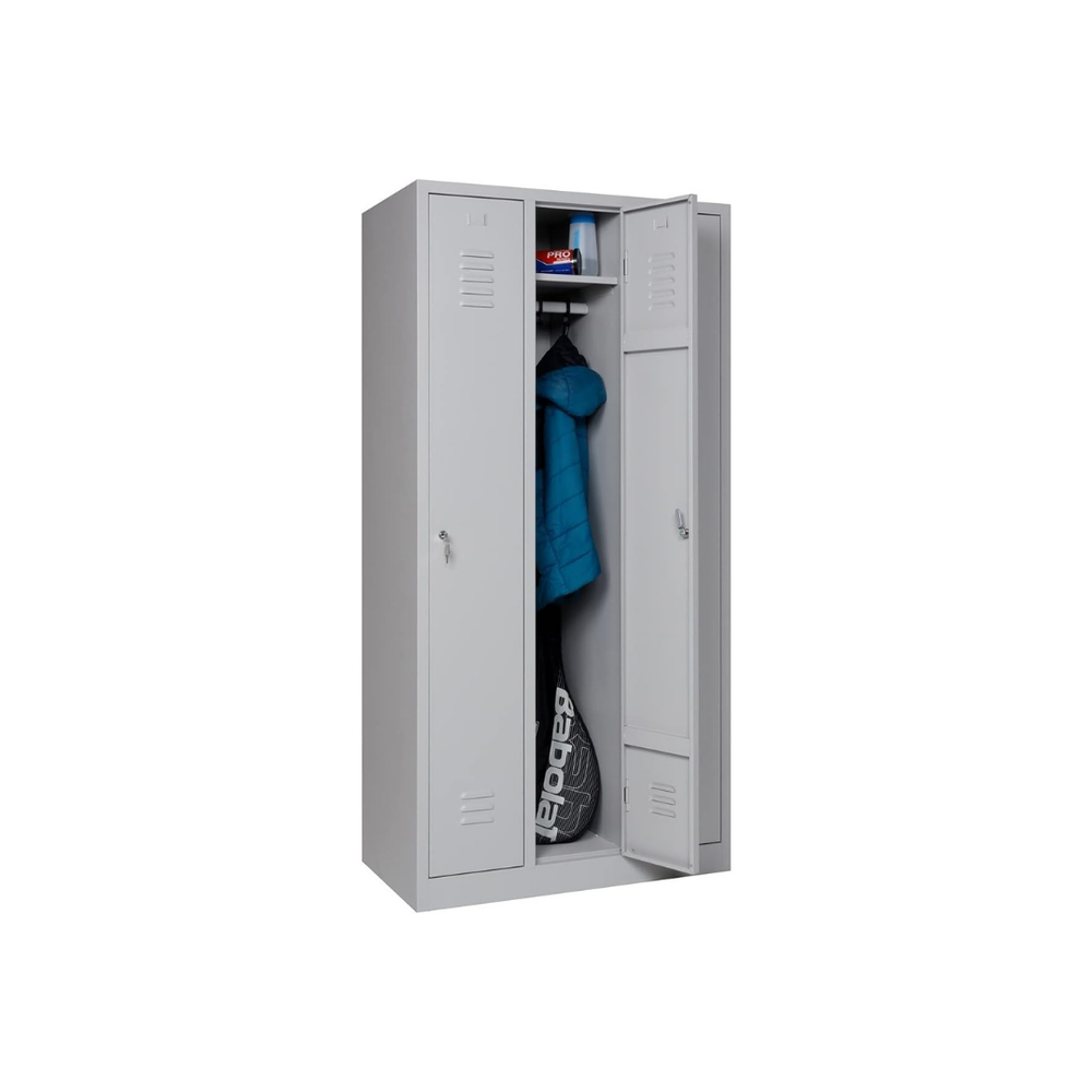 - Dank seiner glatten Oberfläche lässt es sich leicht reinigen. Verschweißter Stahlkorpus auf Sockel. Türen mit Lüftungsschlitzen und eingestanztem Etikettenrahmen. Zylinderschloss mit 2 Schlüsseln. Verdeckte Scharniertüren mit 180°-Öffnung. je Fach eine Garderobenstange, Pulverbeschichtet, GS-Zeichen.
